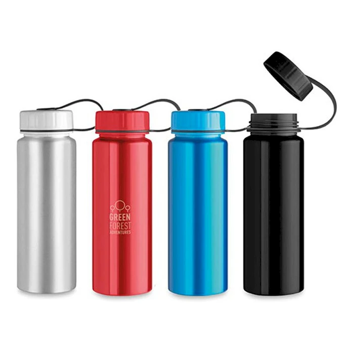 Alumiininen juomapullo. Vesipullon tilavuus on 500 ml. Juomapullo sopii yhtä lailla treeneihin, salille kuin työpöydälle. Yrityksesi logo voidaan painaa tai laserkaivertaa vesipulloon.