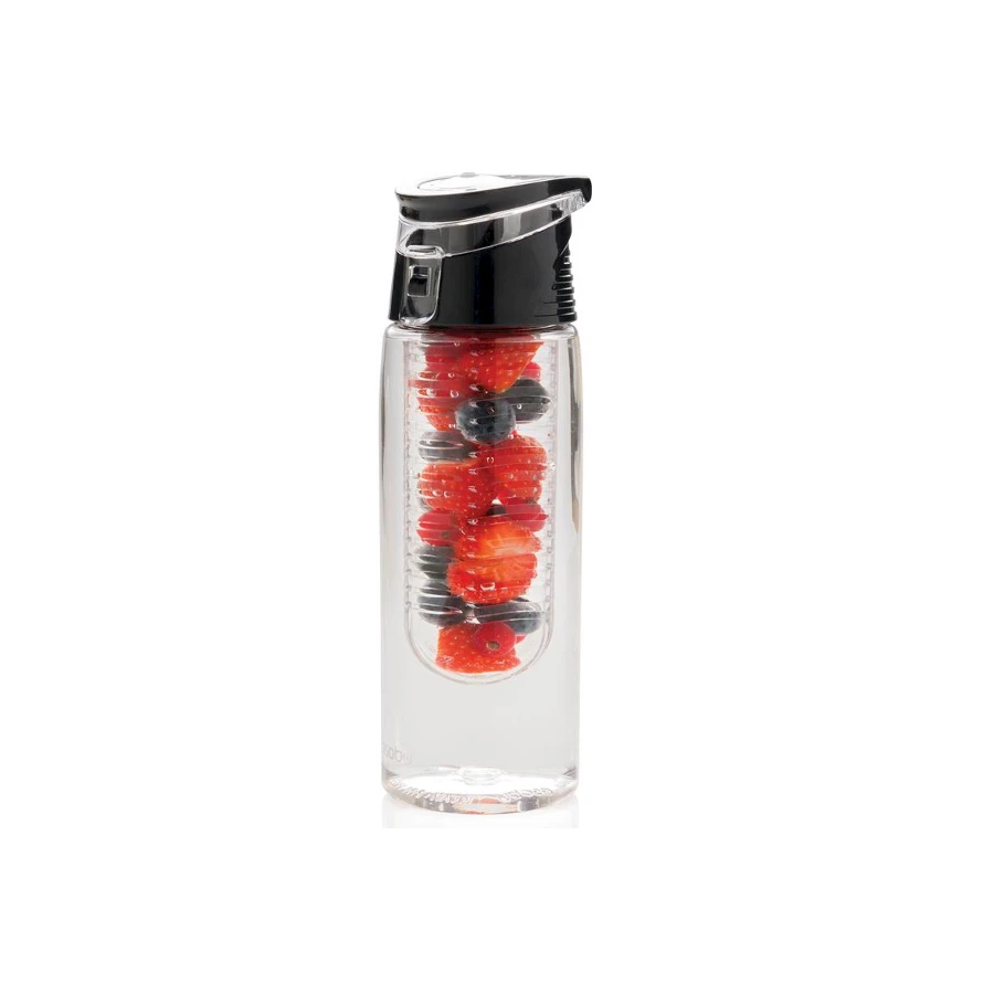 Trendikäs infuusiopullo veden maustamiseen hedelmillä ja marjoilla. Pudota sporttipulloon marjoja tai hedelmiä, joilla saat veteen makua. Maukas treenijuoma antaa myös energiaa. Runko naarmuuntumatonta ja kestävää tritaania. Kansi ABS-muovia ja lukittava. Halkaisija 7,5 cm, korkeus 23 cm, vetoisuus 700 ml. Materiaali BPA-vapaata.
