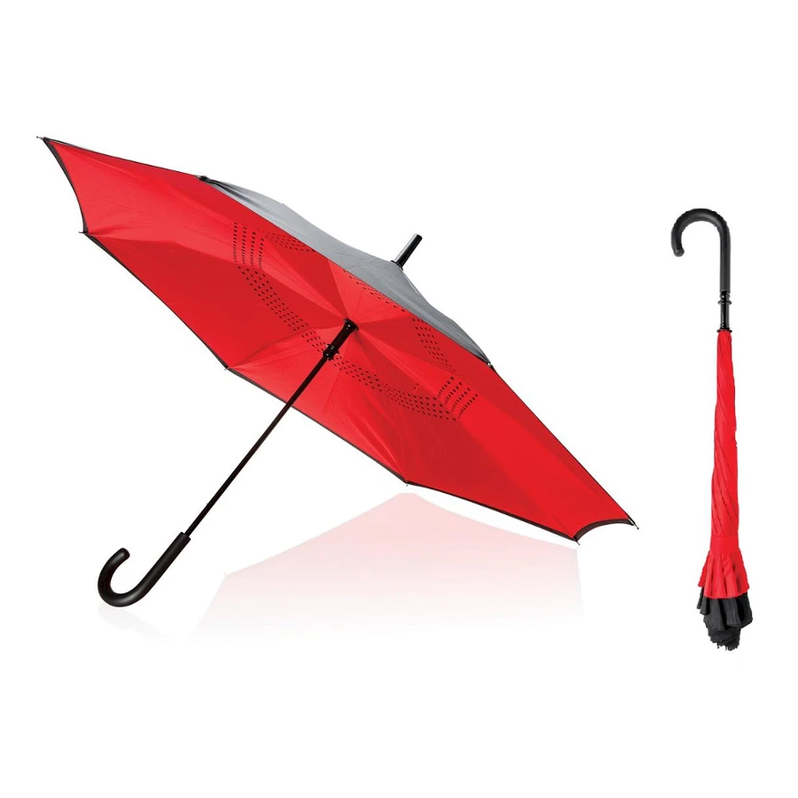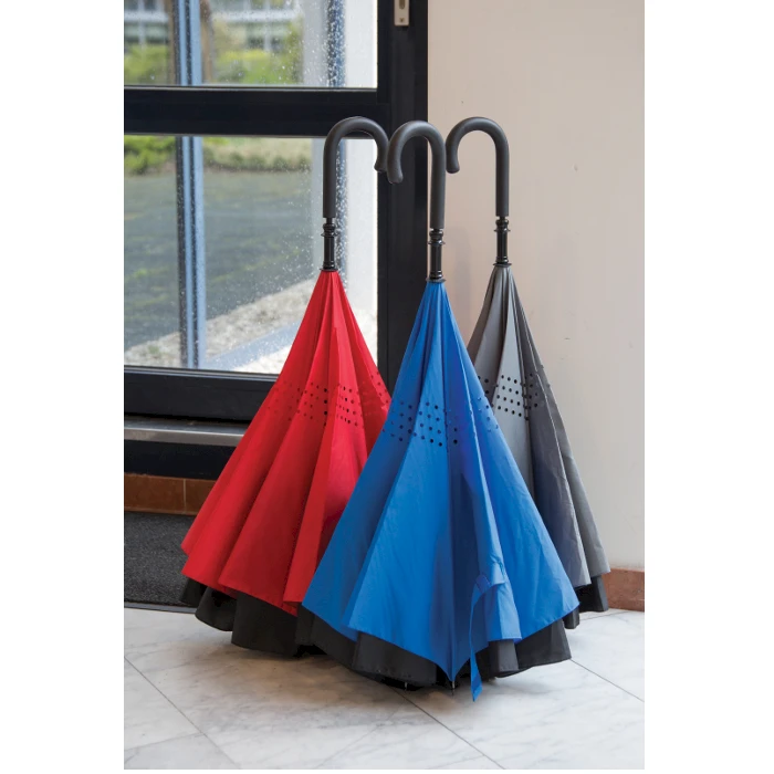 Käännettävä 23" sateenvarjo, jossa manuaalisesti toimiva avaus ja sulkumekanismi. Sateensuoja on helppo sulkea ja avata vaikkapa autoon sisälle mentäessä. Sateenvarjossa on lasikuituinen runko ja se on tuulenkestävä. Nerokas kääntösateenvarjo pitää sinut ja sisätilat kuivana. Saatavana useissa eri väreissä.