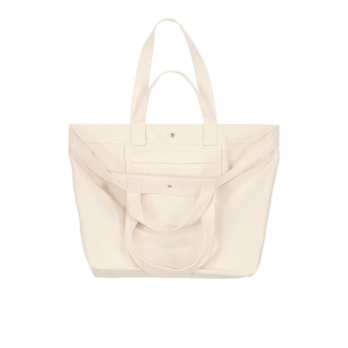 Pitkät ja lyhyet kantokahvat vahvistettu ristipistoin, mikä takaa hyvän kesävyyden. Sisäpuolella on kätevä tasku. Sisäsaumat on viimeistelty kalanruototeipeillä. Yläreunassa huolitetlu yksittäistikkinen tikkaus.