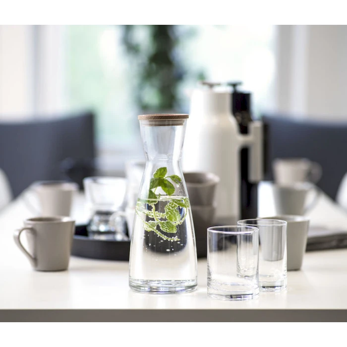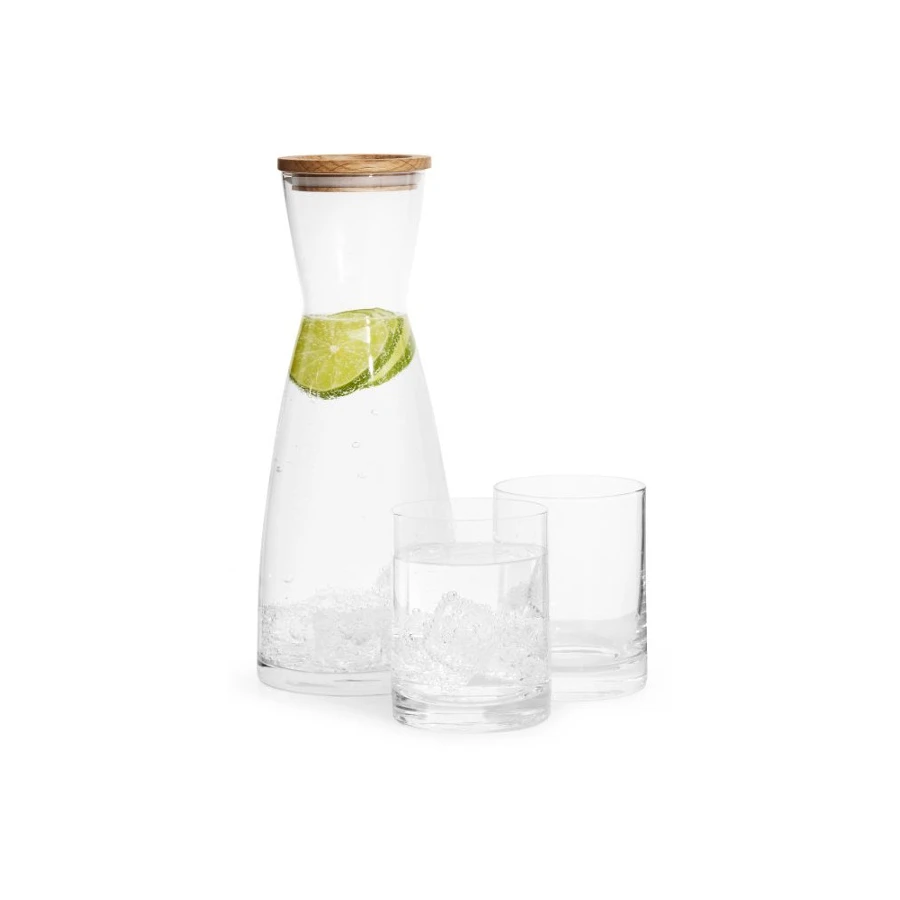 Tyylikäs karahvi bambukannella. Korkissa on silikooninen tiiviste. Karahvi on pakattu kahden juomalasin kanssa näyttäväksi lahjapaketiksi. Täydellinen lahja joulupöytään tai kesälahjaksi. Väri: kirkas lasiMateriaali: lasi/bambu/silikoniKoko: