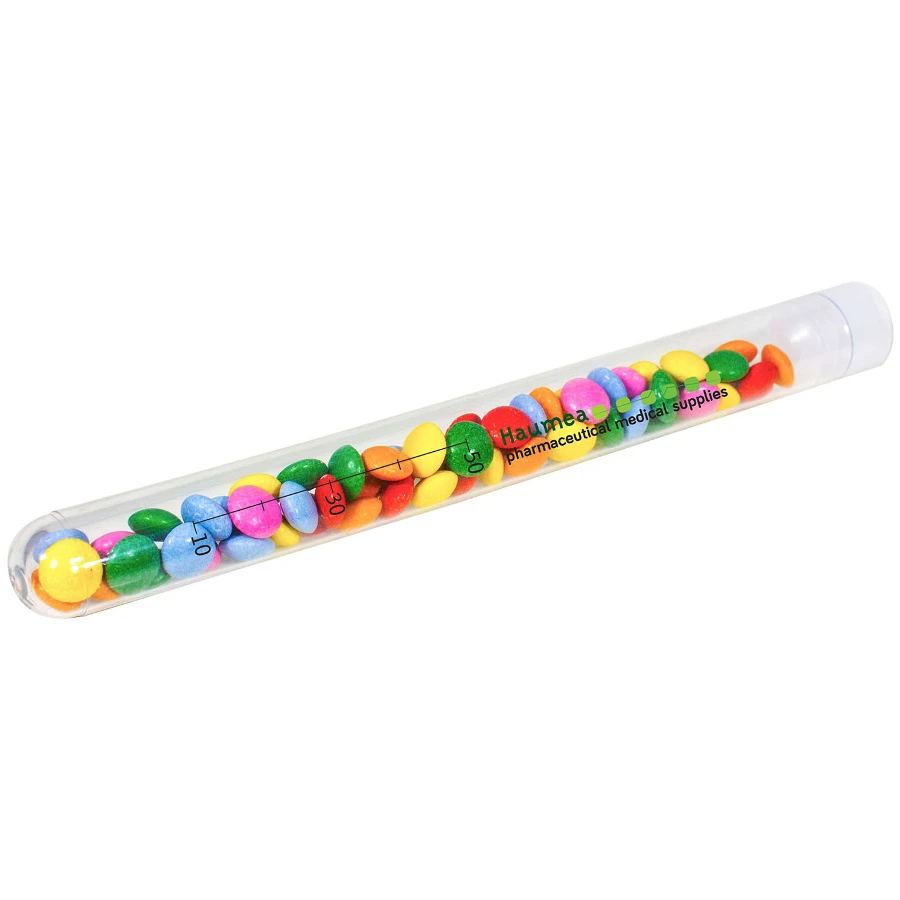 Testituubi jonka sisällä on värikäs yhdistelmä herkullisia karamelleja. Läpinäkyvän testituubin sisälle voit valita useasta eri karamellimakuvaihtoehdosta värikkään sisällön. Suklaapastilleja on saatavana useissa eri väreissä. Muovinen karamelliputkilo on erinomainen mainostuote messuille ja tapahtumiin. Läpinäkyvään testituubiin voidaan tehdä monivärinen painatus tai etiketti. Pyydä tarjous. Maut: suklaa, espresso, sokeriton minttu, salmiakkiMateriaali: muoviKoko: 160 cm x 19 mm, 16 g