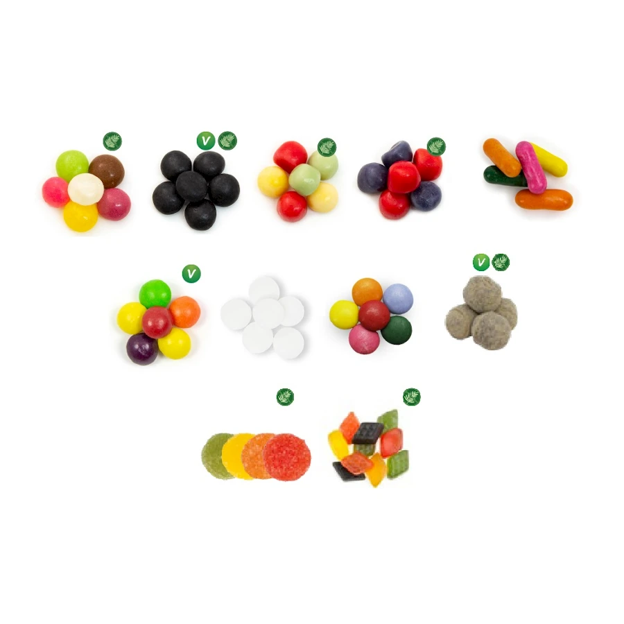 Maut: hedelmäsekoitus, lakritsi, minttu, vadelma-lakritsi, metsämarjat, lakritsitikut, kovat suolaiset pallot, skittles hedelmä, ruutumix.