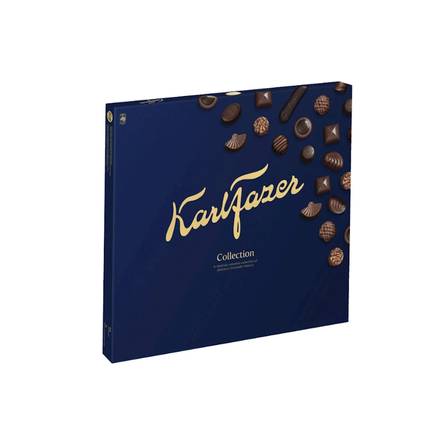 Karl Fazer Collection -konvehtirasiat sisältävät Fazerin hienoimpia suklaakonvehteja, jotka tarjoavat makuelämyksiä tärkeisiin hetkiin. Rasioiden laajaan konvehtivalikoimaan kuuluu yhteensä 14 eri makua suurimpia suosikkeja, maistuvia uutuuksia sekä rakastettuja klassikoita alkaen vuodesta 1908. Mikä parasta, kaikki Fazerin herkulliset suklaat on valmistettu 100 % vastuullisesti tuotetusta kaakaosta. Rasia on tyylikäs lahja vaativimmallekin suklaanystävälle ja juhlakauden elegantti tarjottava. Karl Fazer 800 g.