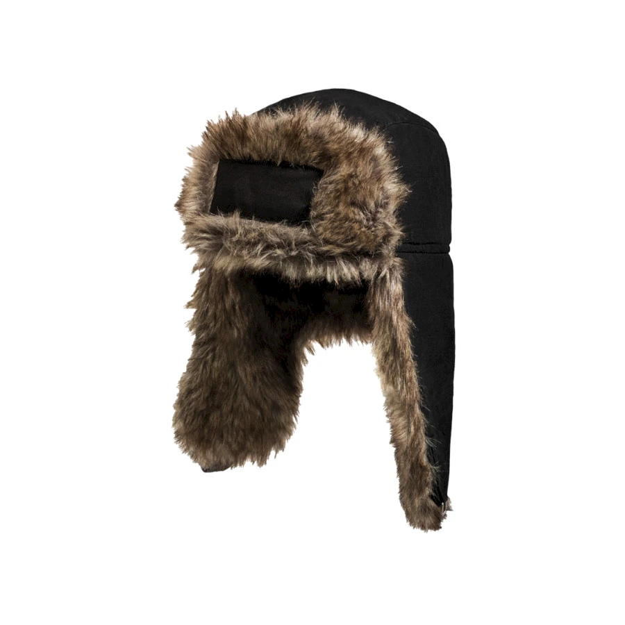 Erittäin lämmin karvalakki korvalapuilla. Talvilakin otsassa puuvillalappu vaikkapa logomerkkausta varten. Keinoturkislakissa tarrakiinnitys ja säätöhihna hopeanvärisellä soljella. Saatavana mustana ja valkoisena.