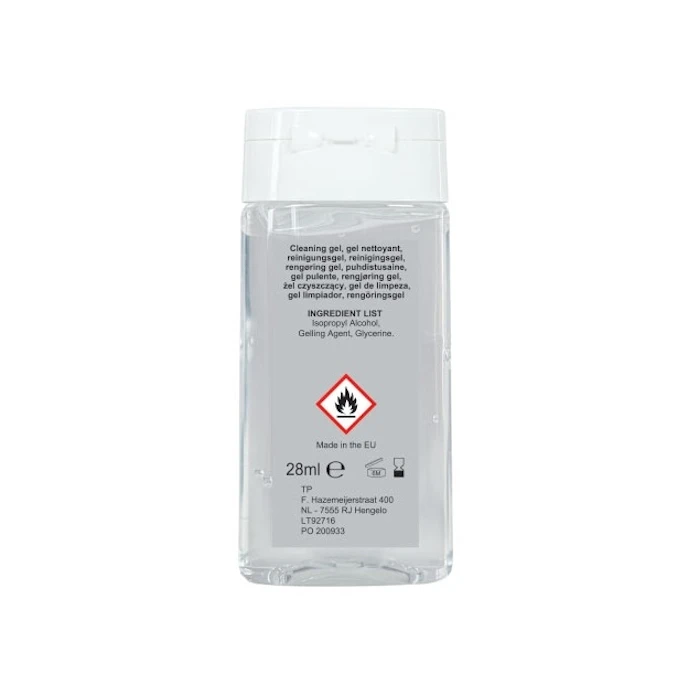 Käsidesi 28 ml. Euroopassa valmistettu käsien desinfiointigeeli. Desinfiointigeeli sisältää 70% alkoholia. Kompakti koko, helppo kuljettaa mukana! Yrityksesi logomerkkaus voidaan toteuttaa digitaalisella painatuksella. Pidä asiakkaat ja henkilöstö turvassa tyylillä! Käsidesi painatuksella on käytännöllinen yrityslahja, joka viestii huolenpitoa ja vahvistaa brändiäsi. Pyydä tarjous.