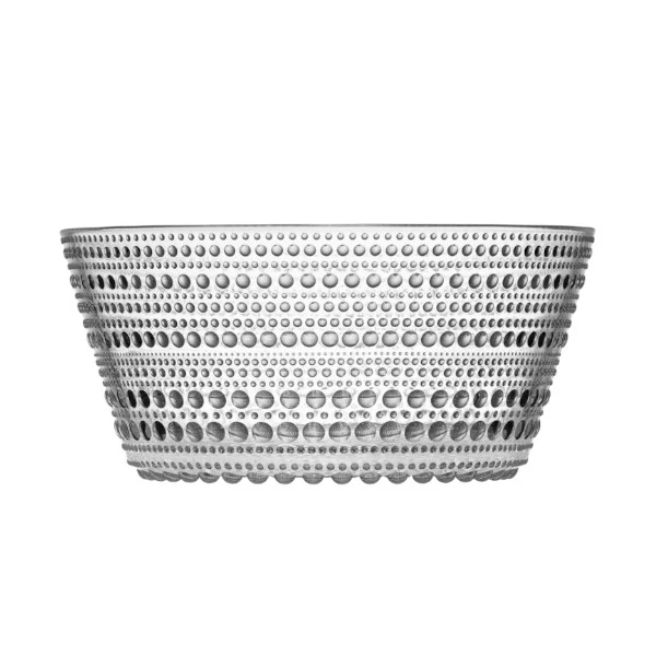Kastehelmi-sarjan ainutlaatuinen pisaramainen pintarakenne syntyi muotoilija Oiva Toikan tavoitteesta peittää puristelasiin jäävät saumakohdat. Kastehelmi-sarjan pintastruktuurin välkkyvät lasihelmirivit muistuttavat aamuauringossa kimaltavaa kastetta. Rakastettuun Kastehelmi-sarjaan kuuluu erikokoisia käytännöllisiä ja koristeellisia lasiastioita. Yksilöllisten ja monikäyttöisten lasien pintarakenteen lasipisarat heijastavat kauniisti valoa. Kirkkaasta lasista valmistettu reilunkokoinen Kastehelmi-kulho sopii salaattien, hedelmien, jälkiruokien ja muiden kylmien ruokalajien tarjoiluun. Tyylikäs lisä jokaiseen kattaukseen. Hienostunut lahja asiakkaille tai henkilökunnalle.