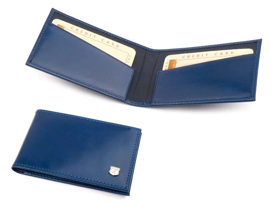 Lompakkomainen tyylikäs nahkainen käyntikorttikotelo, pituussuunnassa aukeava ja sisältää kaksi taskua käyntikorteille. Saatavilla useita eri värivaihtoehtoja.