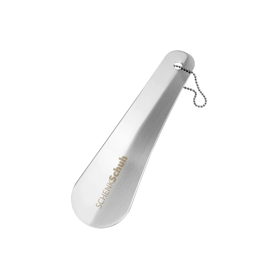 Kestävä kenkälusikka ruostumattomasta teräksestä. Tämä kenkälusikka on kestävä ja pitkäikäinen. Kenkälusikassa kätevä metalliketju ripustusta varten. Yrityksesi logomerkkaus voidaan tehdä laserkaiverruksena kenkälusikkaan. Kenkälusikka logolla on käytännöllinen ja edullinen mainoslahja, joka pysyy asiakkaan arjessa mukana pitkään. Tämä kompakti ja hyödyllinen tuote tarjoaa loistavan paikan yrityksesi logolle tai viestille – ja samalla helpottaa kengän pukemista päivästä toiseen. Kenkälusikat ovat suosittuja erityisesti messuilla, asiakaslahjoina ja osana tervetuliaispaketteja.