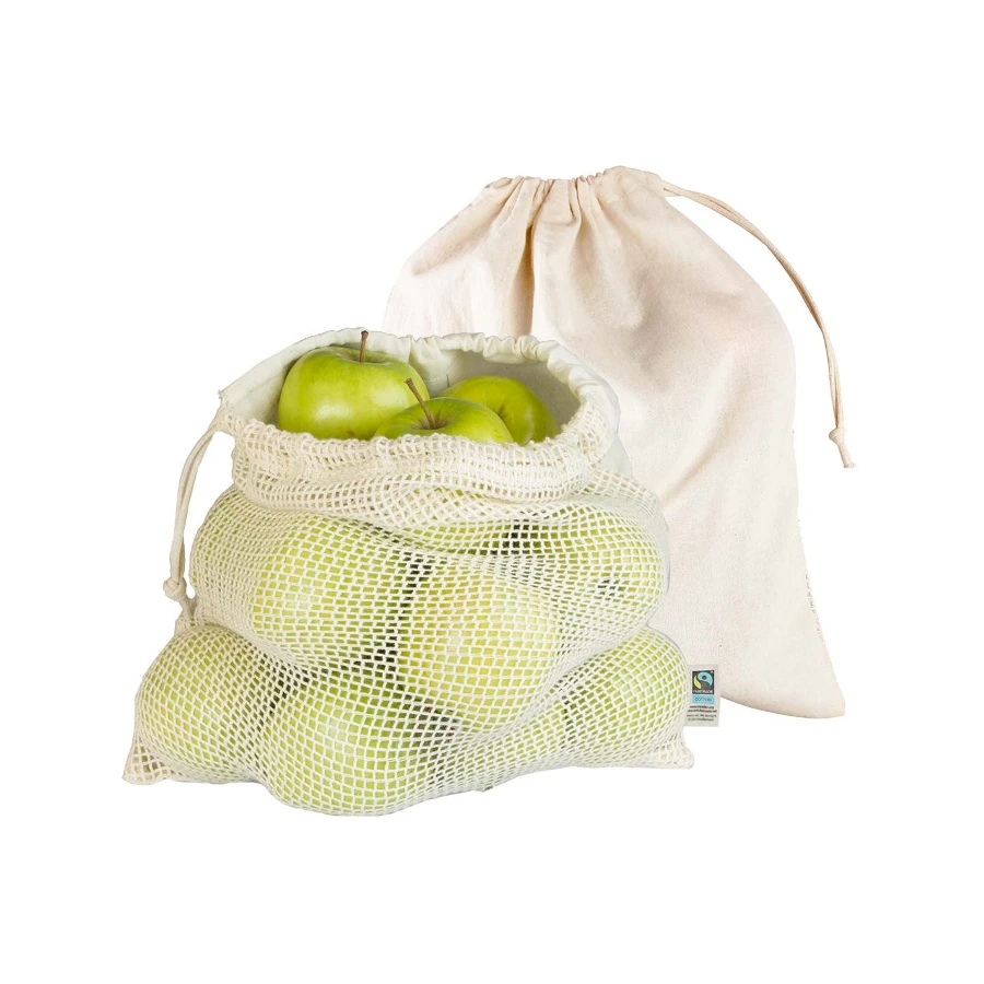 Bio puuvillasta valmistettu kestohedelmäpussi Fairtrade on hyvä vaihtoehto vihannesten pakkaamiseen. Valitsemalla tukevan kestohedelmäpussin mukaan kauppareissulle vähennät muovijätteen määrää ja säästät ympäristöä. Orgaanisesta puuvillasta valmistetussa kantopussissa on kiristysnauha ja siihen mahtuu max. 3 kg vihanneksia tai hedelmiä. Saat logopainatuksen pussiin. GOTS ja Fairtade sertifikaatit on merkitty pussiin. Väri: luonnonvalkoinenKoko: 30 x 40 cmMateriaali: 100 % Bio puuvilla