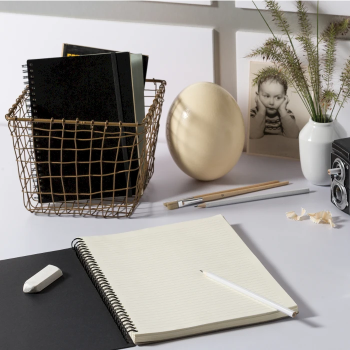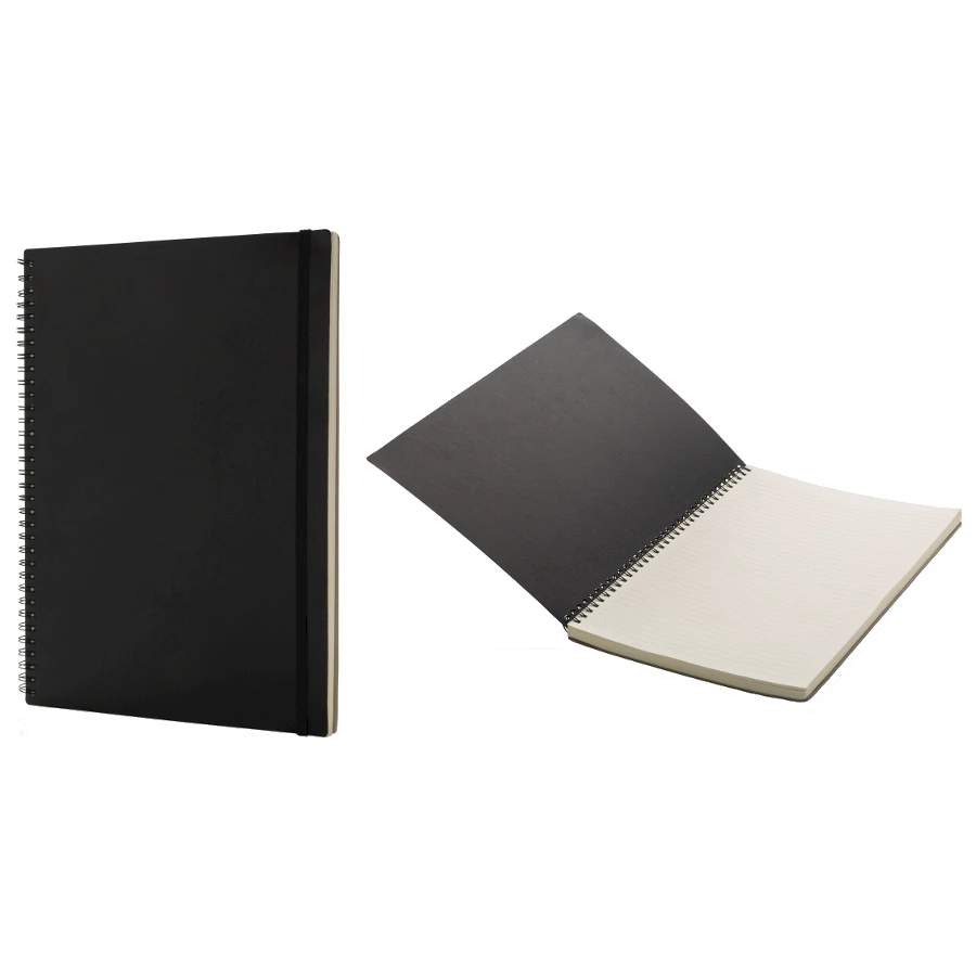 Kierreselkäinen vihko, jossa on 160 luonnonvalkoista sivua. A4-muistikirjassa on 160 viivoitettua sivua ja kätevä kuminauhakiinnitys. Saatavana myös A5 koko.