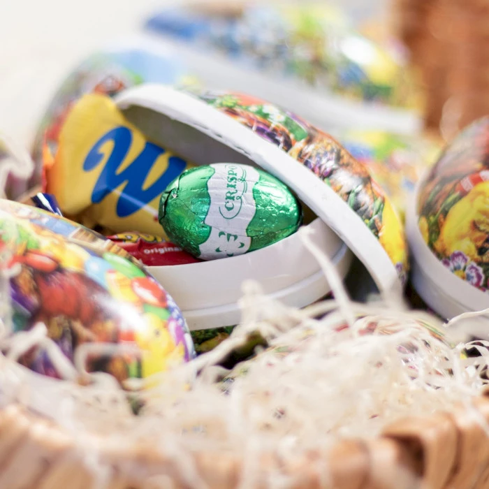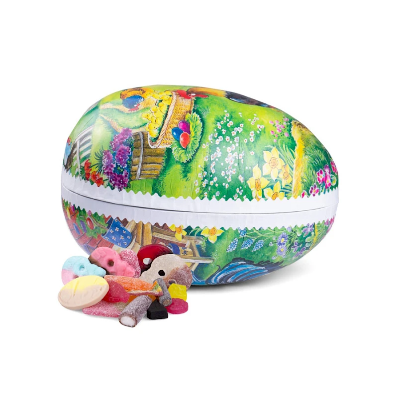 Klassinen pääsiäsmuna täynnä laadukkaita ja herkullisia pääsiäismakeisia. Todellinen pääsiäissuosikki. Valitse haluamasi sisältö useista eri vaihtoehdoistamme.