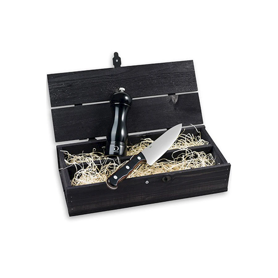 Tyylikäs lahjasetti sisältää Gensen kokkiveitsen ja Java maustemyllyn. Pakattu mustaan puiseen lahjalaatikkoon. Suunnittelija Bent Severin/Studio Gense.