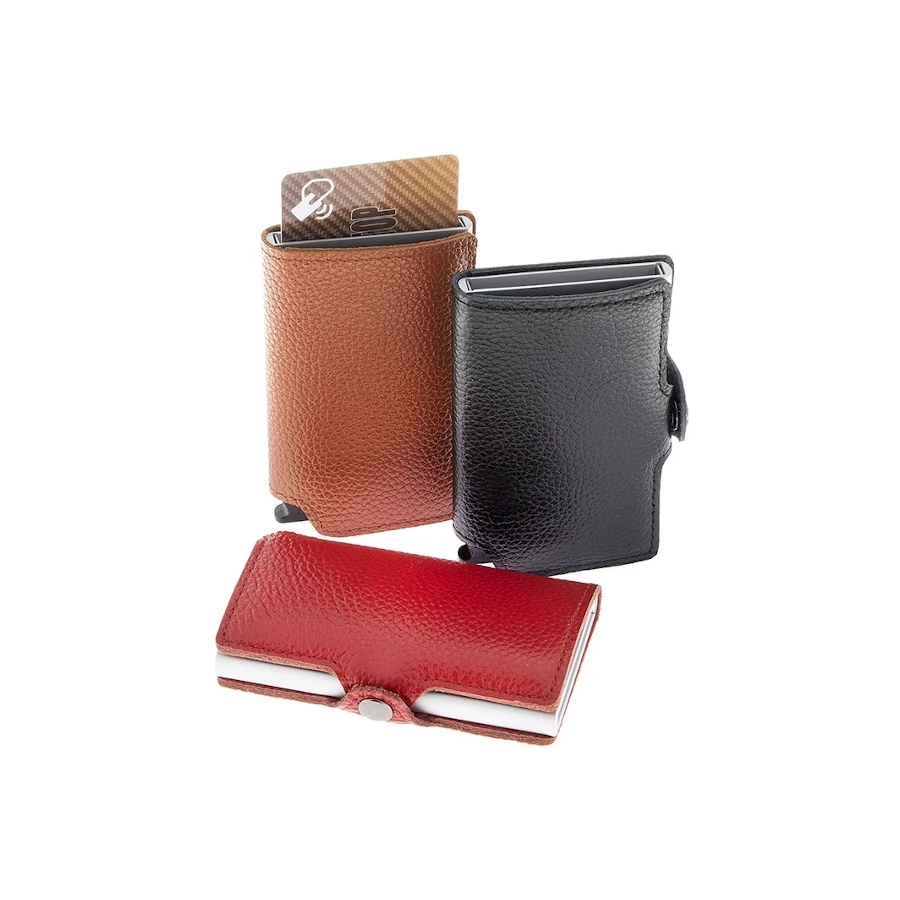 Korttilompakossa on RFID-suoja joka estää korttien tietojen skannaamisen lompakosta mutta mahdollistaa korttien käytön lähimaksamiseen. Lompakon pinta on aito nahkaa. Laadukkaat ja kestävät materiaalit takaavat pitkän käyttöiän. Kortteja mahtuu 5 kpl yhteen lompakkoon. Lahjakotelo.