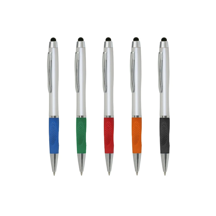Kosketusnäyttökynä, jossa kosketusnäyttöpää ja kuulakynä. Raikas muotoilu. Metalliklipsi. Muotoillun silkikoonivyötteen ansiosta kynä on mielyttävä käyttää. Sininen kirjoitusmuste.