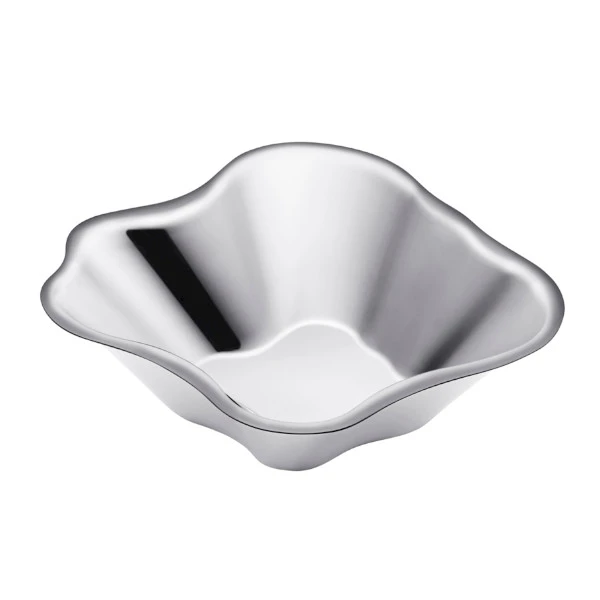 Modernin suomalaisen muotoilun pioneerin Alvar Aallon luomasta epäsymmetrisesti aaltoilevasta muodosta tuli muotoilijansa tunnus arkkitehtuurista taidelasiin. Aalto-kulho kunnioittaa Aallon ikonisen muotoilun perinnettä uusilla valmistusmateriaaleillaan. Alkuperäinen muoto toistuu ruostumattomassa teräksessä, jonka kirkkaalla pinnalla heijastuva valo tuo aaltomaiset kuviot esiin uudella tavalla. Aalto-kulho on kaunis sisustusesine, joka soveltuu myös kattaukseen. Arvostettu lahja, kodin sisustusesine tai tarjoiluastia kuiville tuotteille, kuten pähkinöille tai makeisille.