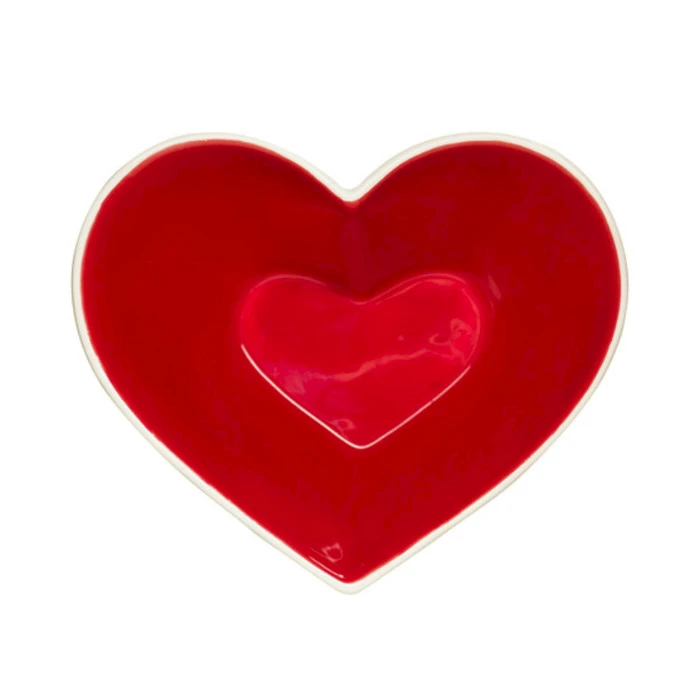 Ihastuttava sydämen muotoinen kulho. Kivitavaraa. Pakkauksessa mukana pieni kortti.Koko 130 x 110 x 45 mm.