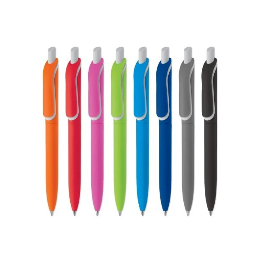 Eleganttinen pehmeäkosketuksinen kuulakärkikynä. Kynässä pehmeä kuminen pinta. Tukeva klipsi ja sininen kirjoitusmuste. X20 mustesäiliö.