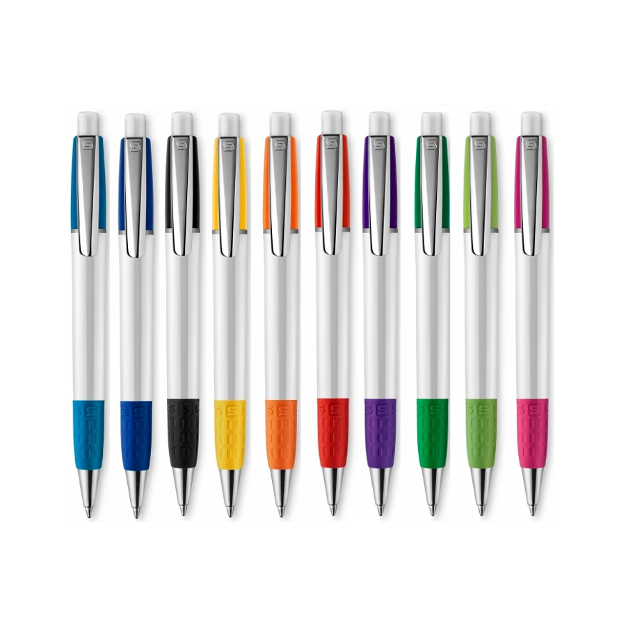 Raikkaan värinen Semyr Grip Young -kuulakynä. Pyöreämuotoinen mainoskynä, jossa mukava kuminen kirjoitusote. Painonappi mekanismi. Metallikärki. RT3 Jumbo säiliö. Niklattu messinkikärki.