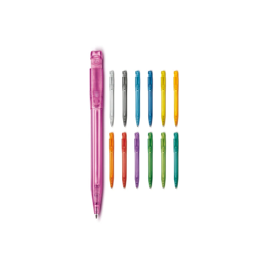 Läpikuultava kuulakynä Clear. Saatavana useissa raikkaissa väreissä. Sopii messuille tai tapahtumiin mainoskynäksi.