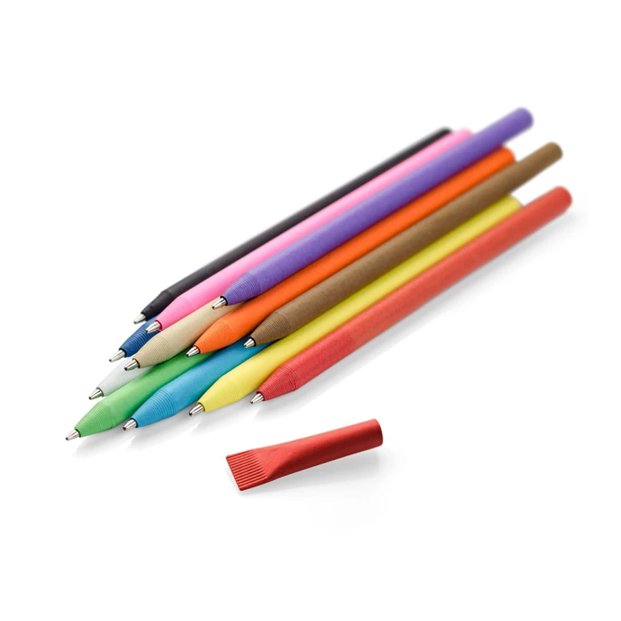 Ympäristöystävällinen kuulakynä Eko Paper on valmistettu kierrätetystä paperista. Mainoskynän paperinen runko on biohajoavaa materiaalia. Kynässä suojatuppi. Värit: valkoinen, keltainen, oranssi, pinkki, punainen, vihreä, sininen, lila, tummansininen, beige, ruskea, musta.Koko: 145 x Ø 9 mm