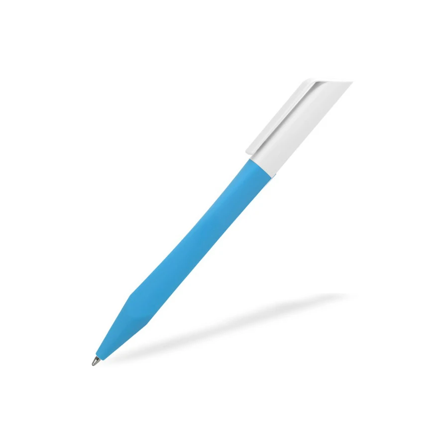 Upeasti muotoiltu kolmikulmainen Ergo kuulakynä. Kynässä on mielenkiintoinen kolmikulmainen Design muotoilu ja mielyttävä mattapintainen moderni Soft Touch runko. Kynä toimii kierremekanismilla. Kynässä sininen muste.