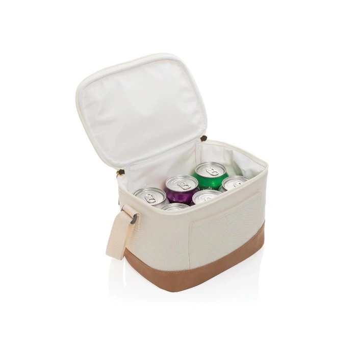 Impact AWARE kylmälaukku. Tähän kylmälaukkuun mahtuu helposti 6 tölkkiä ja siinä on avoin etutasku ja kantokahva. Ekologinen kylmälaukku on valmistettu korkealaatuisesta 16oz. kierrätetystä canvaksesta kauniilla PU yksityiskohdilla. AWARE™ jäljitysaineella, jolla todennetaan aidosti kierrätetyn canvaksen käyttö. Jokaisen kylmälaukun valmistuksessa säästetään 506.2 litraa vettä. 2% jokaisen myydyn Impact-tuotteen voitosta lahjoitetaan Water.org -järjestölle.