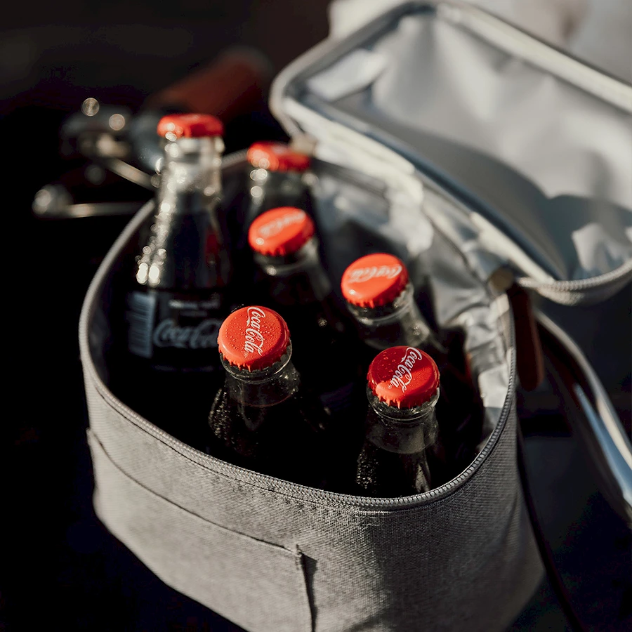 Moderni ja tyylikäs pieni kylmälaukku/eväsalukku, johon mahtuu lounastarpeet tai vaikkapa kuusi juomatölkkiä lisukkeineen. Sisäpuoli on helppo pyyhkäistä puhtaaksi, ja paksu PEVAvuoraus pitää tuotteet pitkään kylminä. Laukun voi kiinnittää myös pyörän ohjaustankoon, golfkärryihin, lastenvaunuihin, veneen reelinkiin ja vaikka vyöhön laukun takapuolella olevilla tarranauhoilla. 50 % valmistusmateriaalista on peräisin kierrätetyistä PET-pulloista. Kylmälaukku painatuksella on kätevä ja näkyvä mainoslahja, joka tuo yrityksesi logon esiin arjessa ja tapahtumissa.