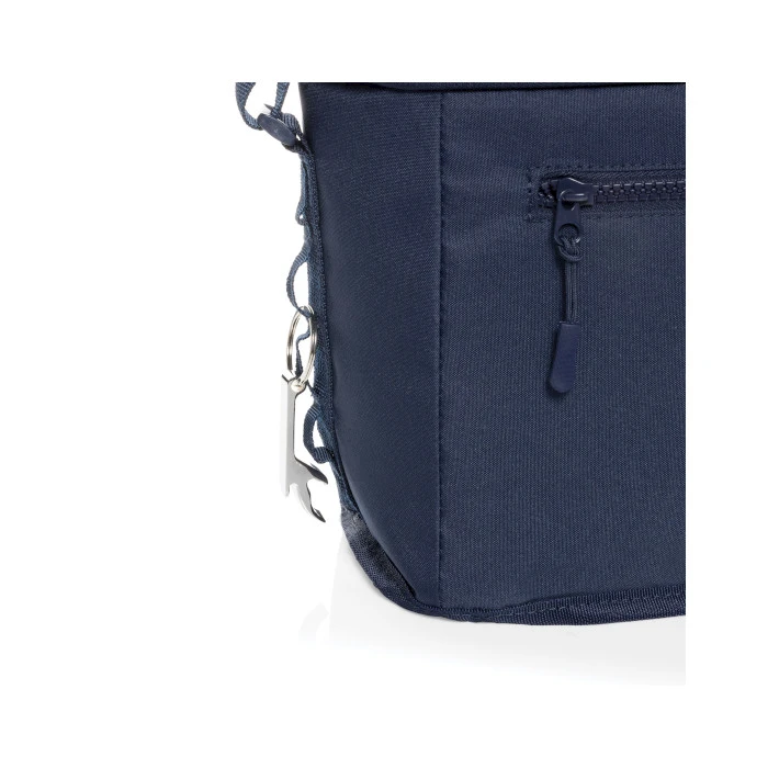 Sonny Aware™ RPET -kylmälaukku on täydellinen yhdistelmä käytännöllisyyttä ja tyyliä. Laukku on valmistettu 100 % RPET-materiaalista ja siinä on PEVA-sisävuori, joka pitää ruoat ja juomat viileinä ja raikkaina. Kylmälaukussa on vahva kantokahva ja säädettävä 110 cm olkahihna. Vasemmalla puolella on lenkkejä pienten tarvikkeiden kiinnittämistä varten, ja oikealla puolella on kätevä verkkotasku juomapullolle. Edessä on vetoketjullinen tasku ja tilava päälokero, jonka hopeanharmaa PEVA-vuori auttaa pitämään sisällön järjestyksessä ja viileänä. Laukku on valmistettu kierrätetystä polyesterista, johon on upotettu AWARE™-jäljitin. 2 % jokaisen AWARE™-tuotteen myyntituotoista lahjoitetaan Water.org-järjestölle. Ei sisällä PVC:tä.