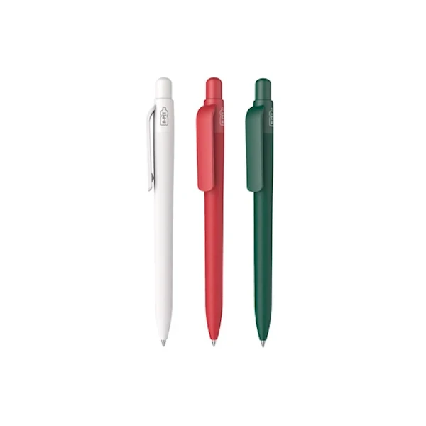 Kuulakynä Kind on valmistettu kierrätetystä RPET muovista. Kynässä 1 mm terä sekä Jumbo säiliö. Sininen kirjoitusmuste. Kind kynässä mattapintainen runko ja klipsi. RPET (ISO 12757-2). Saat yrityksesi logopainatuksen runkoon tai klipsiin.