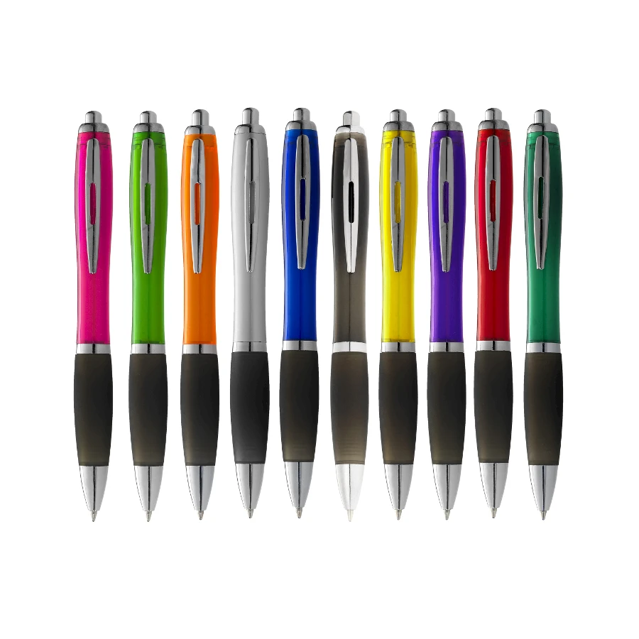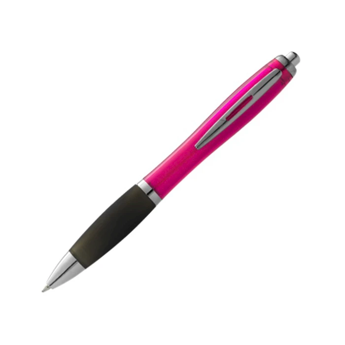 Kuulakärkikynä sinisellä musteella. Ergonomisesti muotoiltu, paksu mainoskynä jossa transparentti läpikuultava muovinen runko ja musta kuminen sormiotealue. Sininen kirjoitusmuste. Saat monivärisen mainospainatuksen kynään.