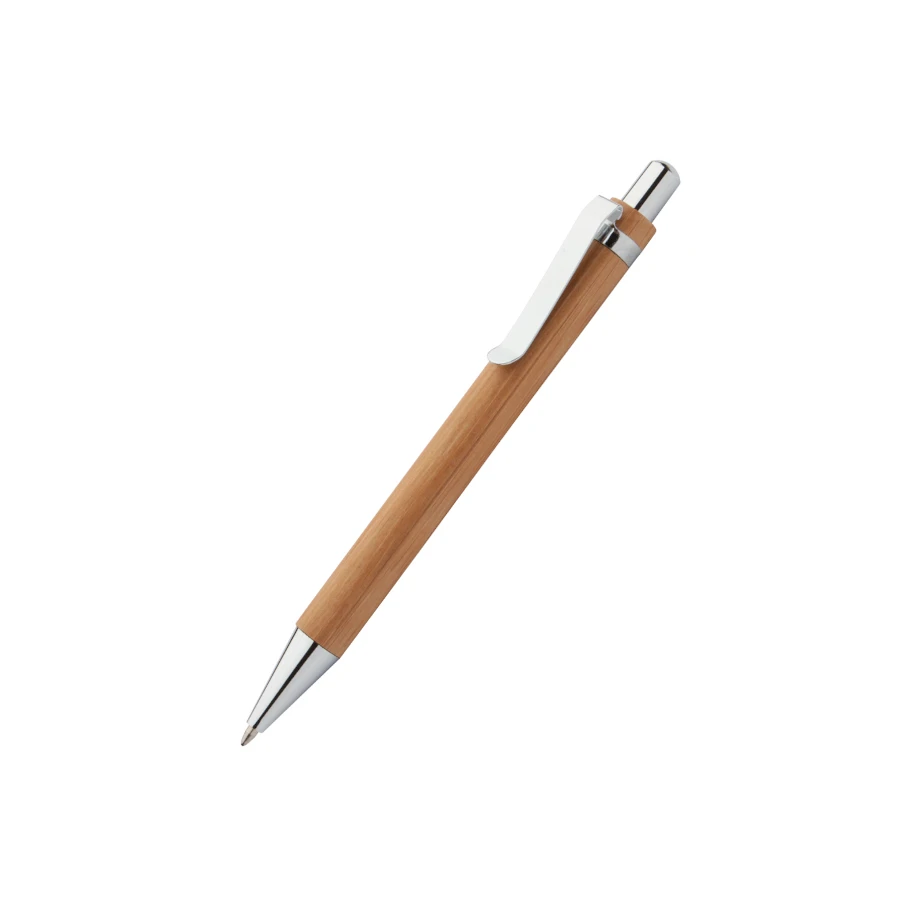 Kuulakynä Nature puu rungolla ja hopeanvärisillä metalliosilla. Logopainatus kynään voidaan tehdä laserkaivertamalla tai painamalla.