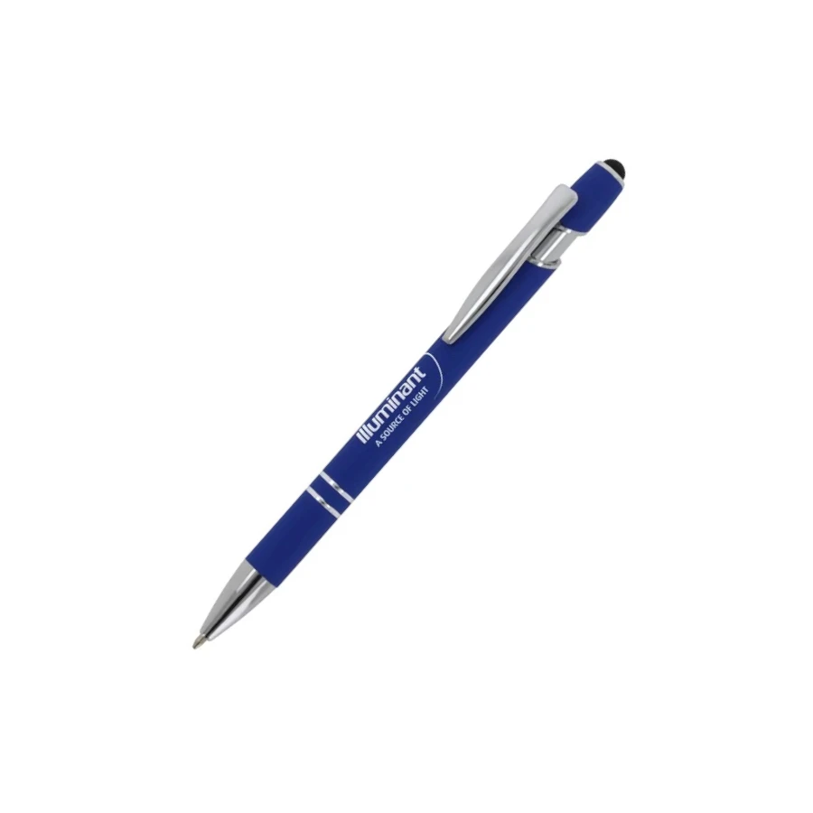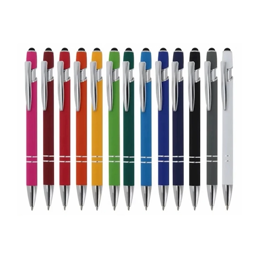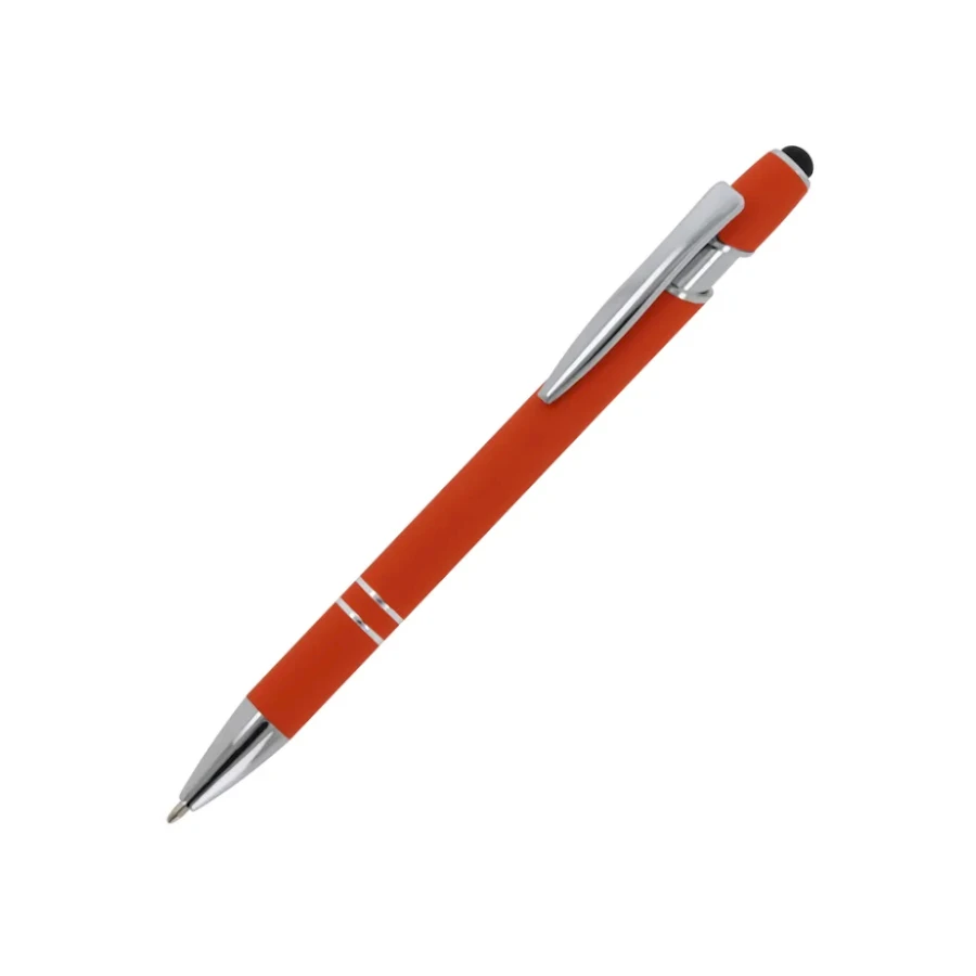 Alumiininen kuulakynä kosketusnäyttöpäällä. Toimiva kosketusnäyttökynä miellyttävällä soft-touch rungolla ja yrityksesi logomerkkauksella. Kynässä painomekanismi.