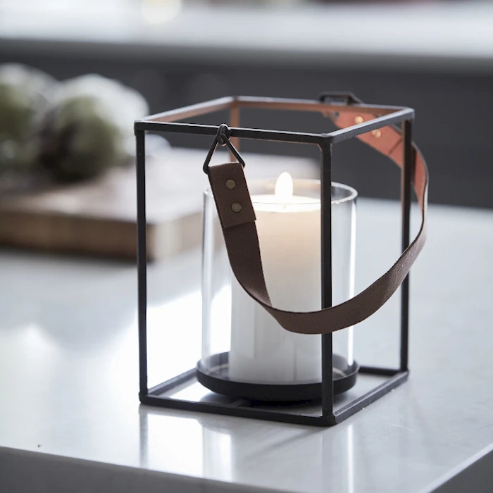 Kynttilälyhty on saanut inspiraationsa suorista, teollisista linjoista. Pehmeä kahva antaa kauniin ja käytännöllisen silauksen loft-henkiselle teräskehikolle ja lasikuvulle. Yksinkertaista ja kaunista!