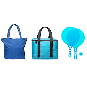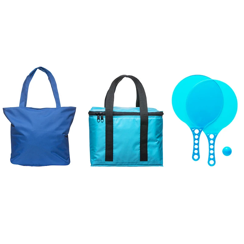 Aktiiviseen rantaelämään! Hankkimalla tämän lahjasetin voit pelata rantatennistä, ennen kuin istahdat nauttimaan kylmälaukkuun pakkaamistasi herkuista. Setti on pakattu kauniiseen turkoosinväriseen rantalaukkuun. Lahjasetti sisältää rantatennispelin, kylmälaukun, rantalaukun.