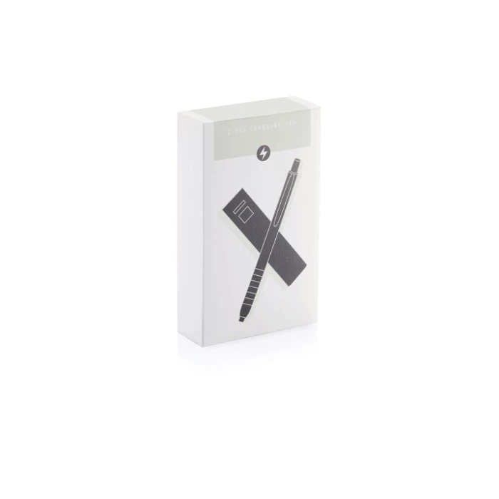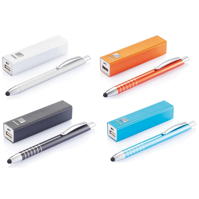 Lahjasetti sisältää varavirtalähteen ja kosketusnäyttökynän. 2 kpl sarja sisältää 2200 mAh alumiinisen Power Bank varavirtalähteen 5 V/1 A antoteholla ja vastaavan tyylisen alumiinikynän kuulakärki- ja osoitinkynäkärjellä.