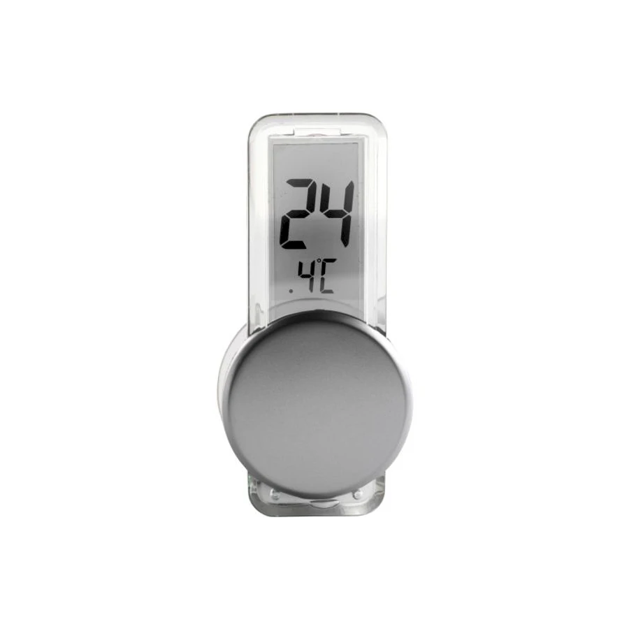 Selkeämuotoinen LCD lämpömittari imukupilla. Mittarissa imukuppi, jolla voit kiinnittää lämpömittarin kätevästi ikkunaan. Mukana paristot. Mittarin edessä olevaan pyöreään kohtaan saat yrityksesi mainospainatuksen näkyvälle paikalle.Koko: 3 x 6,5 x 2 cmMateriaali: akryyli
