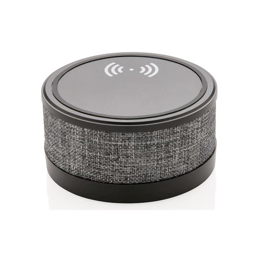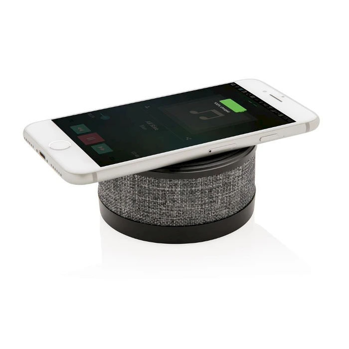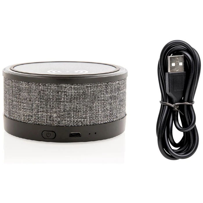 Älykäs langaton kaiutin 5W laturilla. Tässä trendikkäässä kangaspäällysteisessä laturissa suosikkimusiikkisi kuuntelu ja puhelimesi lataaminen yhdistyvät langattomasti. Liitä yksinkertaisesti mukana toimitettu 150 cm:n micro-USB-kaapelin USB-laturiisi kotona tai toimistolla ja olet valmis lähtemään. Laitteessa on 3 W Bluetooth kaiutin ja 5 W langaton laturi. Kaiuttimessa on 400 mAh:n akku ja BT 4.1, mikä mahdollistaa jopa 3 tunnin toistoajan ja jopa 10 metrin käyttöetäisyyden. Käytettäessä molempia toimintoja varmista, että laite on liitetty virtalähteeseen. Tuloteho: 5 V / 1 A, langaton lähtöteho: 5 V / 1 A 5 W. Koko 4 x Ø 8 cm