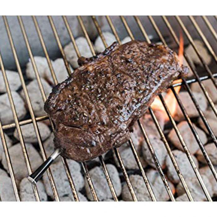 Meater® langaton älypaistomittari. Modernissa kinkkumittarissa on kaksi sisäänrakennettua lämpösensoria. Älypuhelimeen asennettava helppo sovellus avustaa valmistamaan täydellistä lihaa, kinkkua tai kalaa. Puhelimesi hälyttää automaattisesti kun paistos on valmis. Paistomittari toimii uunissa, paistinpannulla, grillissä tai vaikkapa savustuspöntössä. Bluetooth grillipaistomittarin kantavuus on 10 metriä uuni tai grilli ja 3 metriä savustin tai grilli. Sovellus saatavana Androidille, iPadille ja iPhonelle. Pakattu tyylikkääseen bambuiseen lataustelineeseen. Yrityksesi logo voidaan laaserkaivertaa puiseen telineeseen.