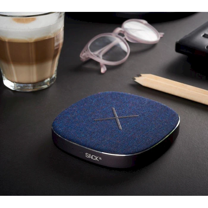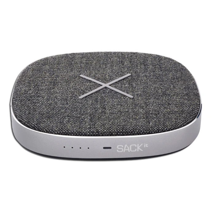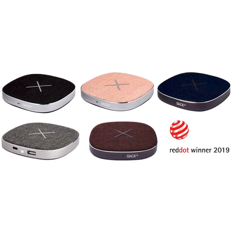 SACKit CHARGEit Langaton Varavirtalähde on Red Dotin design-palkinnon vuonna 2019 voittanut elegantti langaton latausalusta. Laitteen runko on laadukasta alumiinia, päällä on tekstiilivalmistajan Kvadratin kulutusta kestävää Remix 2 kangasta. Tyylikäs skandinaavinen kangaspintainen varavirtalähde jossa 6000 mAh. Sopii niin kotitoimistoon ja mukaan matkalle. Laitteessa LED-valo, lataus USB C-portin kautta. Myös Micro-USB, 2.1A, 9V. Qi-sertifikaatti takaa turvallisen käytön.