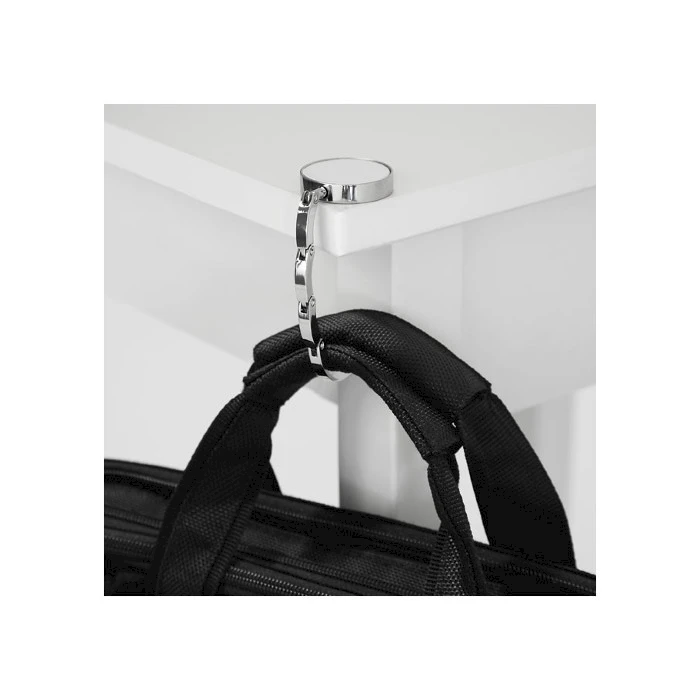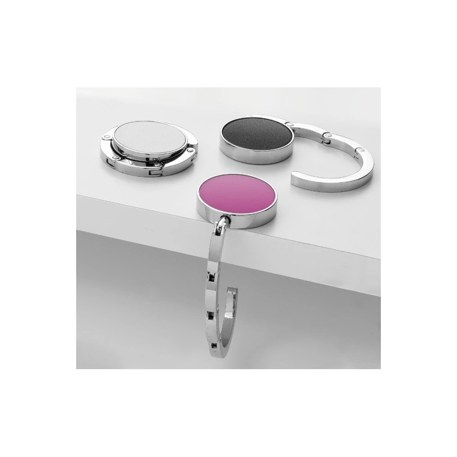 Laukkukoukun avulla voit ripustaa käsilaukkusi kätevästi ja siististi pöydänreunaan roikkumaan. Lisäksi henkilö- kohtaiset tavarasi ovat turvallisesti silmiesi lähettyvillä. Pieneen kokoon rullautuva laukkukoukku kantaa noin 4,5 kg. Materiaali metalli/magneetti. Saatavana myös muita malleja ja kokoja. Laukkukoukkun voidaan tehdä yksivärinen logopainatus tai näyttävä monivärinen painatus. Pyydä tarjous omasta määrästä ja toteutuksesta.