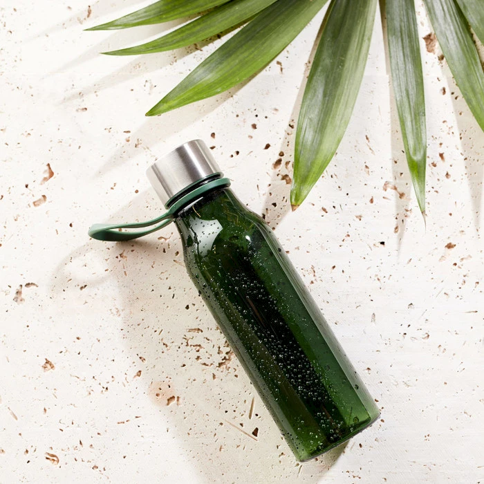 Tyylikäs juomapullo toimistoon, kotiin ja salille. Pulloa on kätevä kantaa silikonilenkistä ja sen voi ripustaa siitä roikkumaan vaikka pyöräntarnkoon. Tritan muovista valmistettu konepestävä juomapullo (ei korkki) ei sisällä vaarallisia BPA-aineita.Tarvittaessa saat kaikkiin tuotteisiimme lisämaksusta personoidun lahjapakkauksen. Tuotteeseen on mahdollista painaa yrityksesi viesti tai logo.