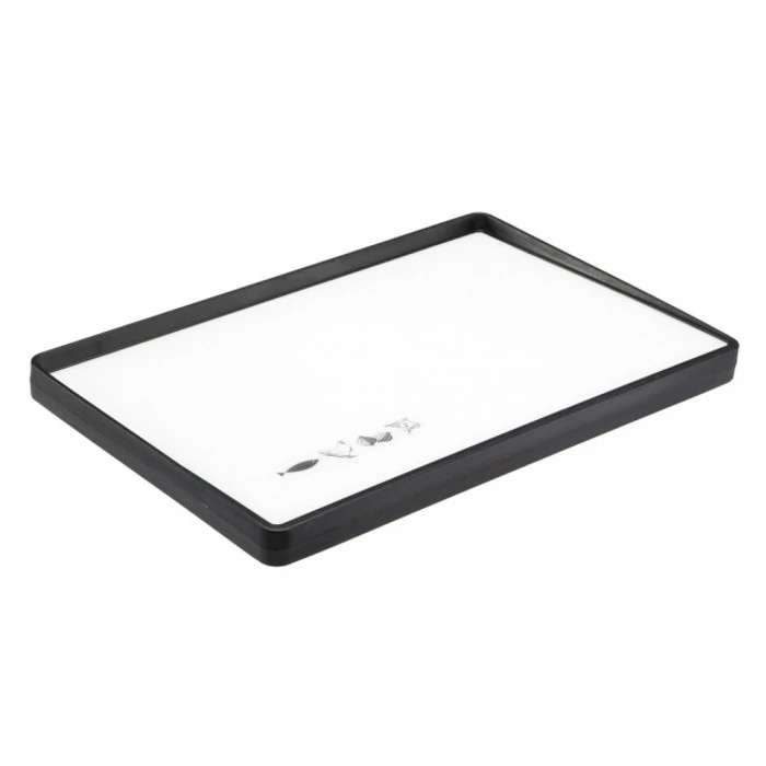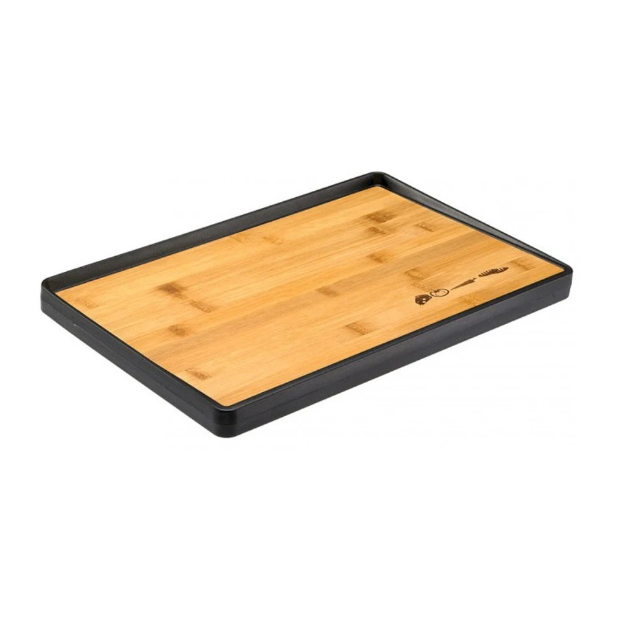 Kaksipuoleinen Choptastic leikkuulauta takaa käytännöllisen ja hygieenisen keittiötyöskentelyn. Leikkuulaudassa on kaksi puolta, muovinen ja puinen. Molemmissa havainnolliset kuvakkeet. Muovisen puolen kuvakkeet ohjaavat leikkaamaan kalaa ja lihaa. Toisen puolen kuvakkeet vihanneksi. Laudan kaltevuus ohjaa leikkuunesteet kulmiin.Koko 38 x 26 x 3 cm.