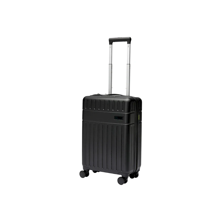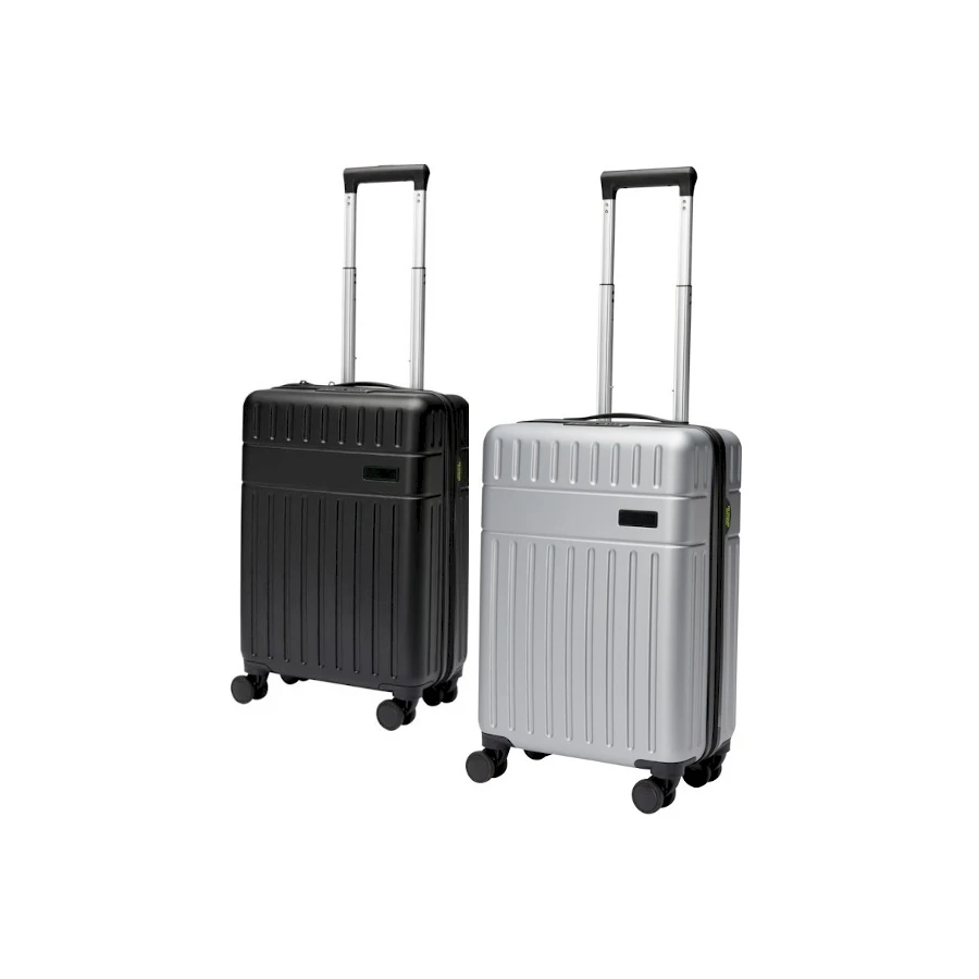 Iskunkestävästä kierrätysmuovista valmistetti 20 tuuman lentolaukku RPET-sisuksella. Tämä matka Trolley edustaa laatua ja ympäristöystävällsyyttä. Matkalaukussa on kaksiputkinen alumiinirunko, 360 asteen 4-pyöräinen vetolaukku, integroitu TSA-yhdistelmälukko, helppokäyttöinen ja mukava tartuntakahva sekä sisäpuolella järjestelijäosastot. Voidaan viedä käsimatkatavarana useimpien yleisten lentoyhtiöiden lennoille. Logomerkkaus laserkaivertamalla.