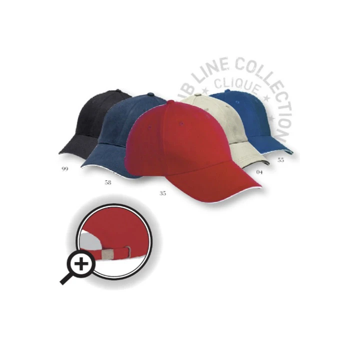 Sandwisch lippalakki säädettävällä metallisoljella. 100 % Puuvillatwill. Useita väriväihtoehtoja.