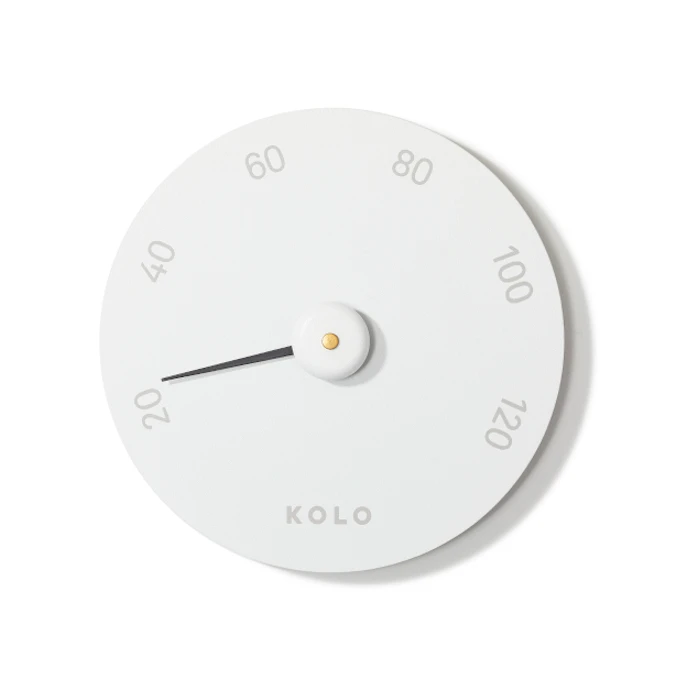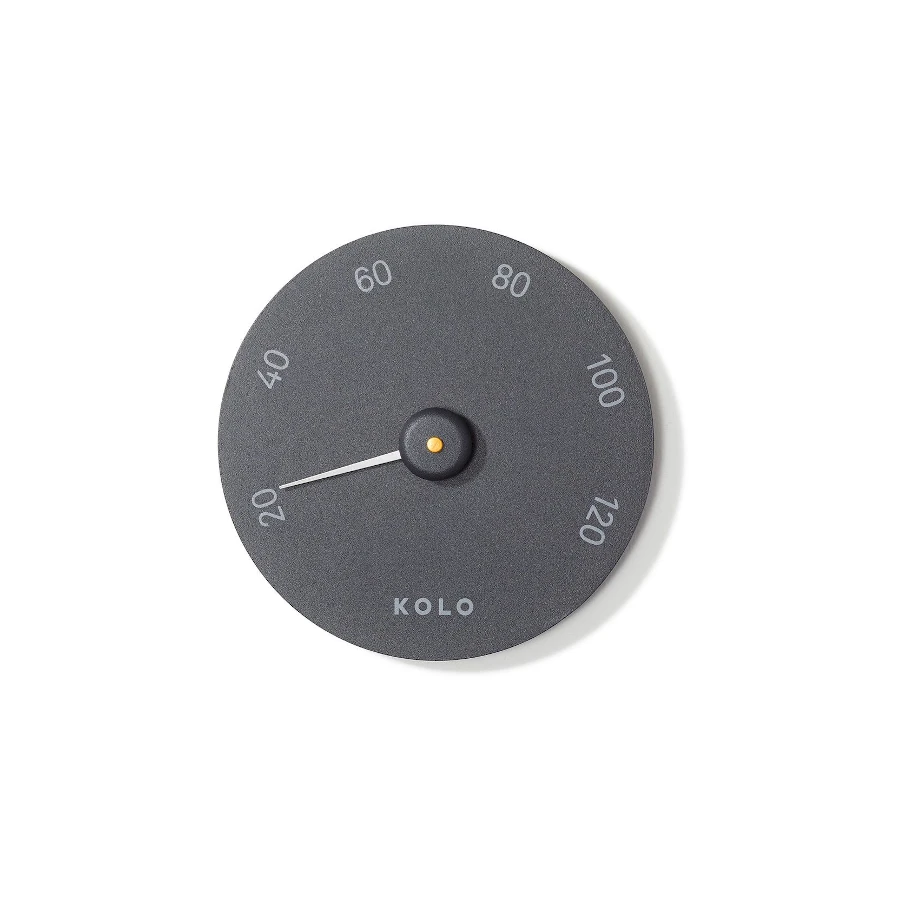 Löylymittari Kolo. Tyylikäs alumiininen saunamittari, jossa selkeä näyttö. Suomalaista designia. Yrityksesi logomerkkaus voidaan toteuttaa laserkaivertamalla. Pyydä tarjous.
