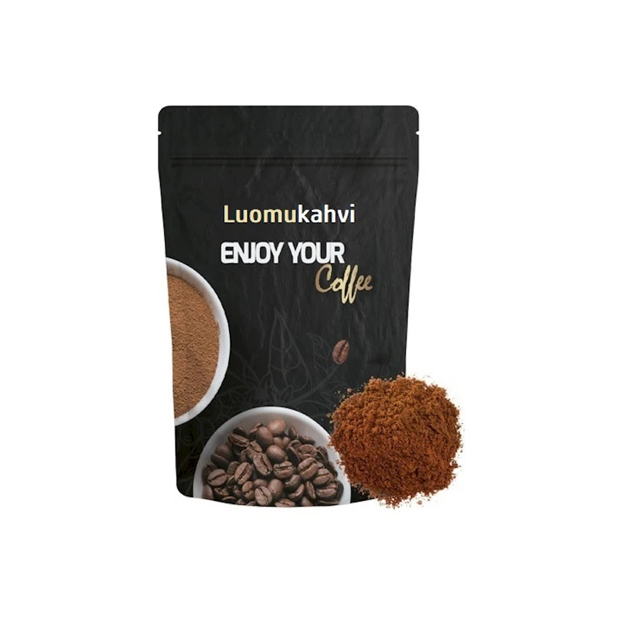 Luomukahvipakkaus omalla mainospainatuksella. Pussin sisällä n. 70 g korkealaatuista luomukahvia. Jauhettu luomukahvi tulee valvotuilta luonnonmukaisilta viljelmiltä. Saat upean monivärisen painatuksen pussiin. Pyydä tarjous omasta toteutuksesta ja määrästä.
