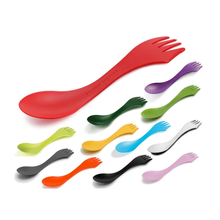 Käytännöllinen lusikka-haarukka-veitsi yhdistelmäaterin. Sopii monikäyttöisyytensä ansiosta luontoretkelle kuin kaupungille. Kestää konepesua ja kuumuutta. Teflonystävällinen materiaali, kestävän kehityksen ajattelua edustava. BPA-vapaata, kierrätettävää Tritania (copolyester).Värit: musta, syaani, vihreä, fuksia, harmaa, lime, navy, oranssi, punainen.