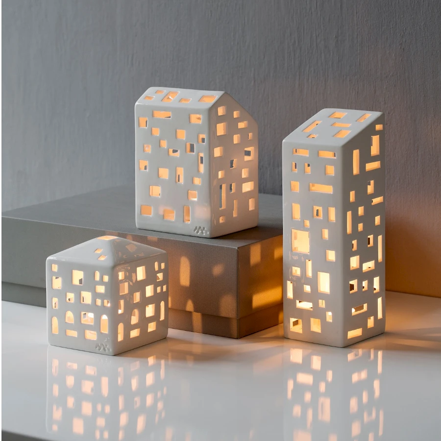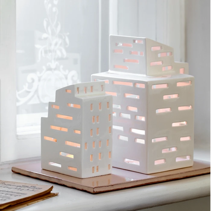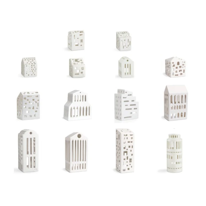 Urbania Lyhty Talo kynttilälyhdyllä luot upean tunnelman pimeneviin iltoihin. Moderni talonmuotoinen kynttilälyhty Urbania talolyhtyyn mahtuu sisälle tuikkukynttilä, paristokynttilä tai ledivalonauha. Sarjan upeiden erilaisten Talojen ikkunat on käsin leikattuja, joka tekee jokaisesta lyhdystä ainutlaatuisen. Kähler Urbania Design Talolyhdyt on suunnitellut Mette Bache ja Barbara Bendix Becker.