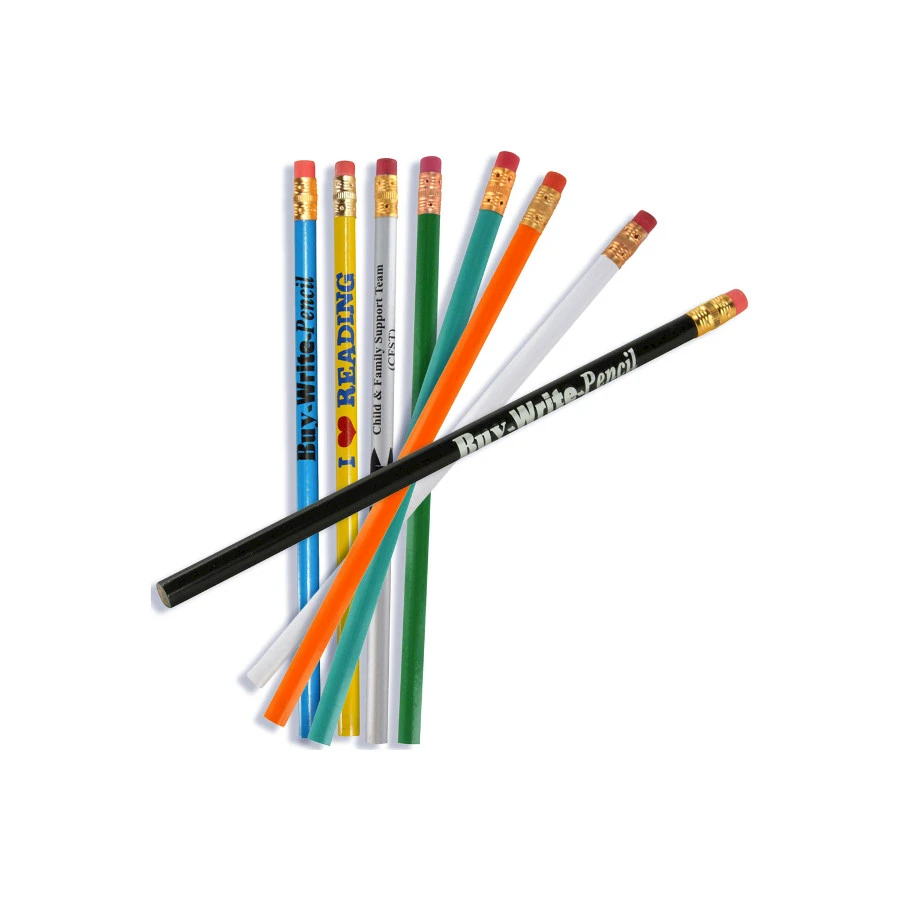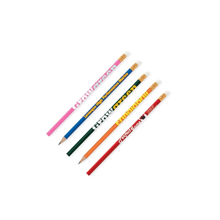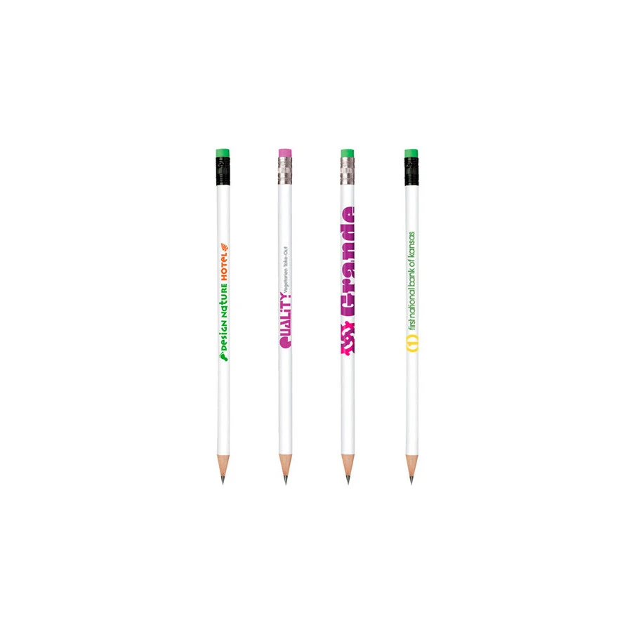 Puinen lyijykynä kumilla. Upea painatus on mahdollista tehdä ympäri koko kynän rungon.
